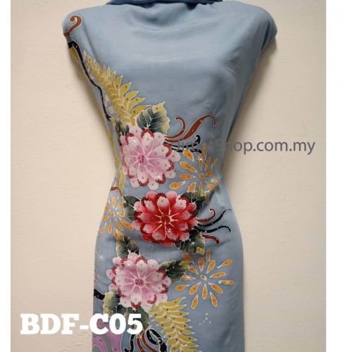 Kain batik sutera corak lukisan tangan dari kain jenis crepe gred 2. Malah di negara kita pun belum ada yang komersialkan.